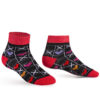Te skarpetki to wesoła gra kolorów: czerwone, fioletowe, pomarańczowe i różowe serduszka tworzą harmonijną całość z kontrastowymi „X”. Idealne dla tych, którzy lubią przyciągać spojrzenia i dodawać odrobinę humoru swoim outfitom.