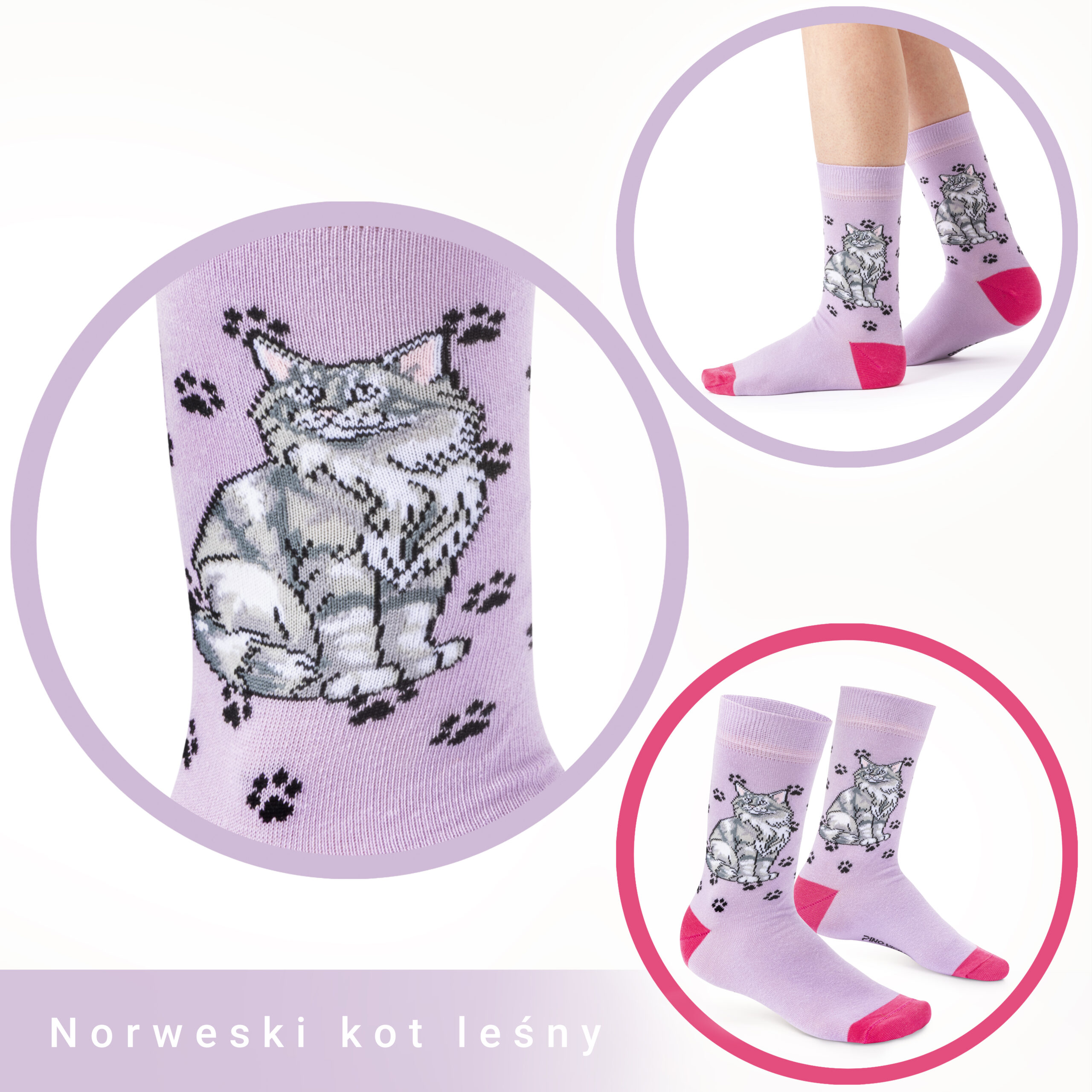 Skarpetki bawełniane z motywem Norweskiego Kota Leśnego – dla miłośników natury, niezależności i kociej dumy.