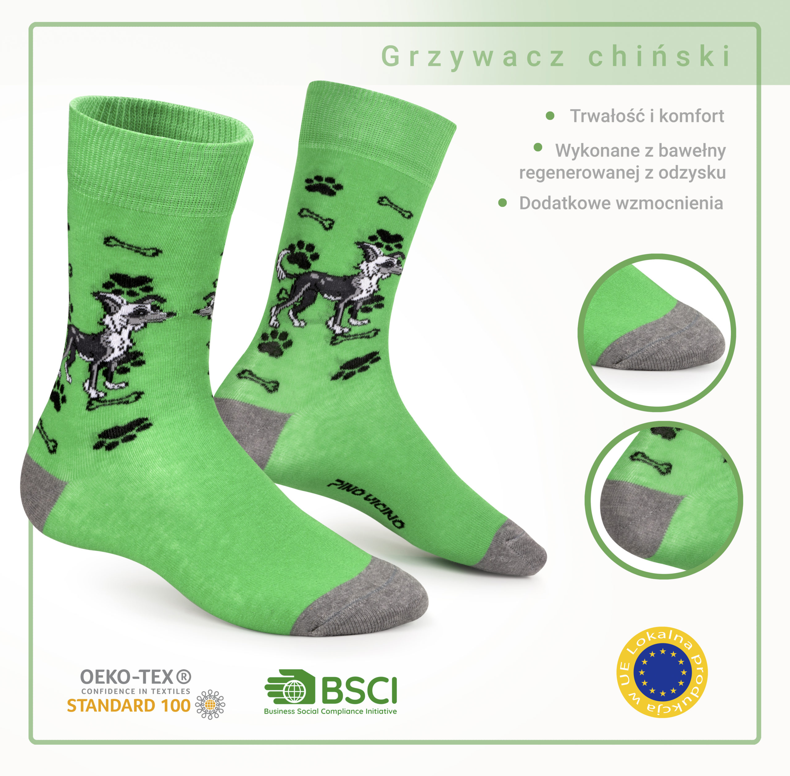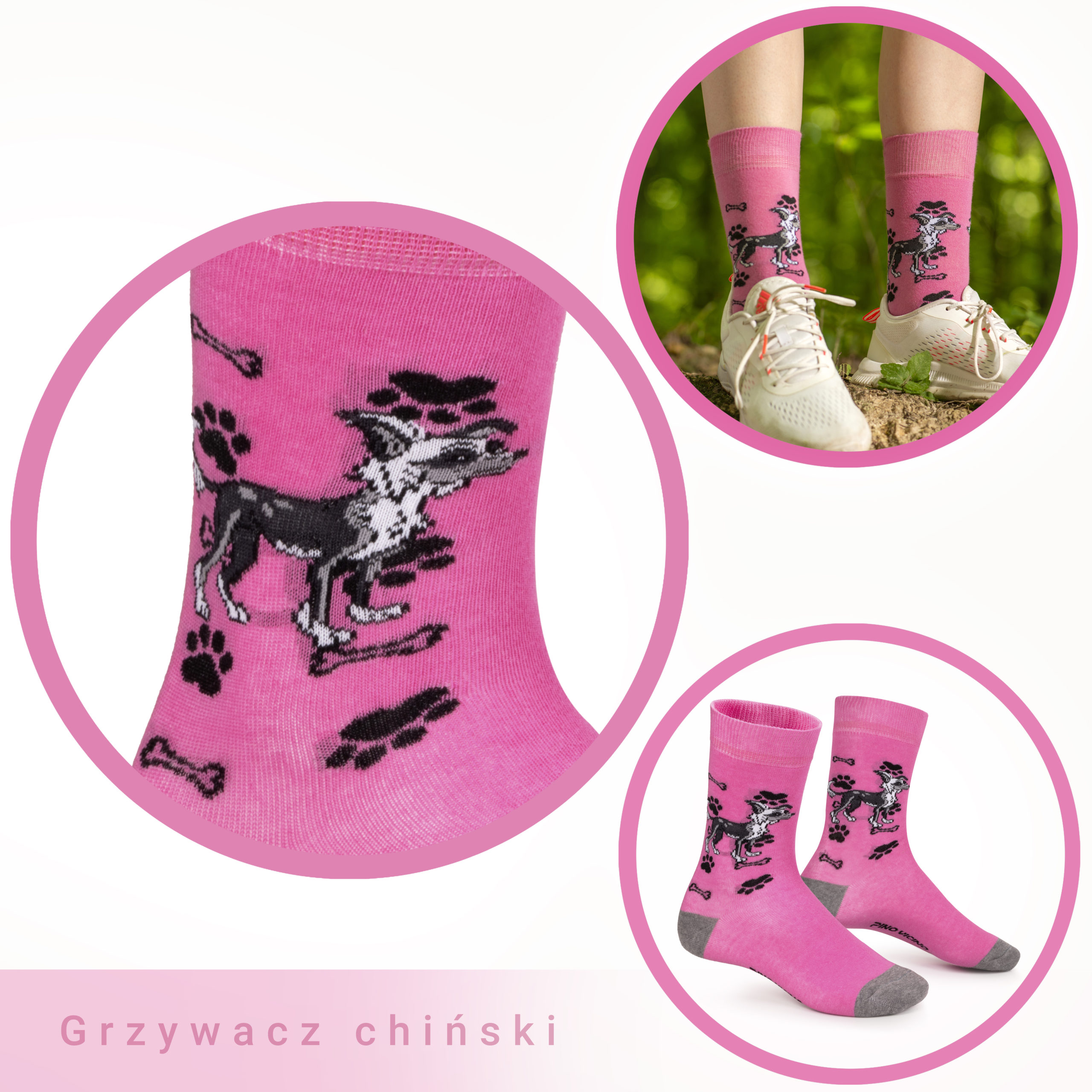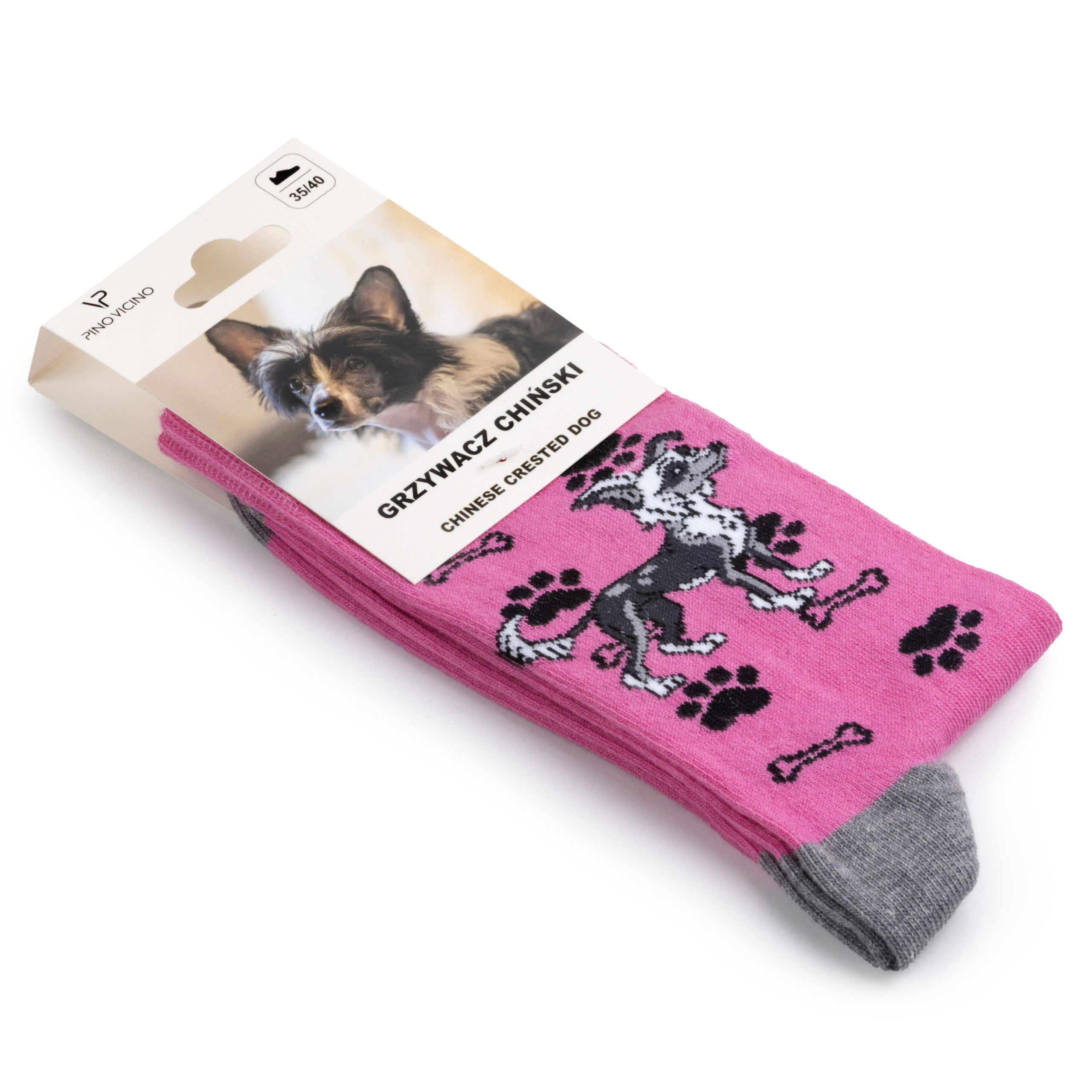 Grzywacz Chiński to jedna z najbardziej wyjątkowych ras – delikatny, elegancki i pełen osobowości. Znany z charakterystycznego wyglądu i radosnego usposobienia, szybko staje się oczkiem w głowie swojej rodziny. Nasze skarpetki z motywem Grzywacza to propozycja dla osób, które lubią wyróżniać się stylem i cenią nietypowe rozwiązania.